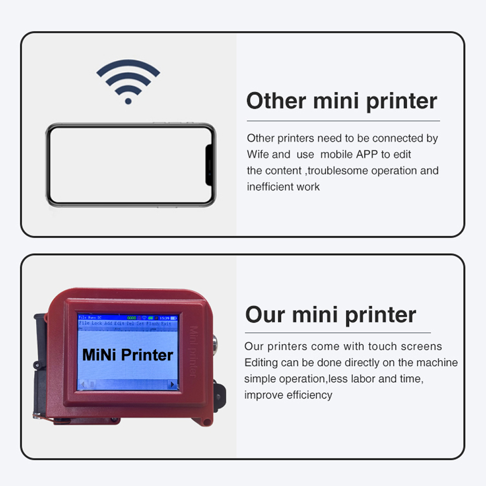 This Mini inkjet printer Can spray print date, time, text, serial number, picture, barcode, two-dimensional code, etc. Hot foaming jet printing technology, 60ODPl high definition jet printing ABS+PC industrial design.Portable intelligent mini handheld inkjet printer.